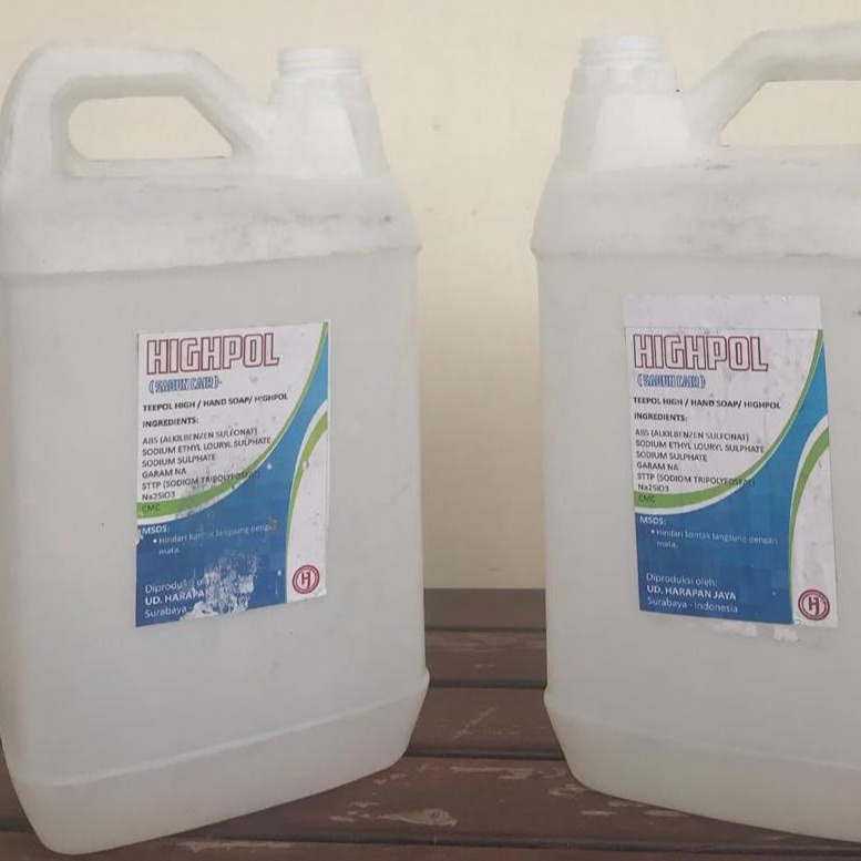 Produk utamanya adalah teepol (tipol) atau juga dikenal sebagai sabun cair industri dan juga hand soap cair (sabun cuci tangan). Kemasan yang digunakan bervariasi dari yang kecil sampai yang curah. Sabun cair yang diproduksi umumnya tanpa pewangi (non-perfumed), karena biasanya kalangan industri ataupun usaha komersial tidak menggunakan pewangi untuk proses produksi dan pencucian peralatannya. Namun demikian, UD Harapan Jaya juga melayanai konsumen yang menginginkan sabun cair wangi, terutama untuk produk hand soap.